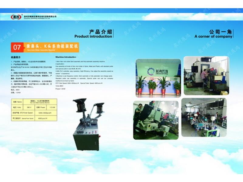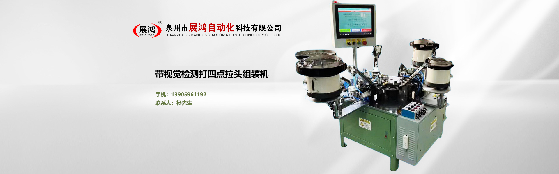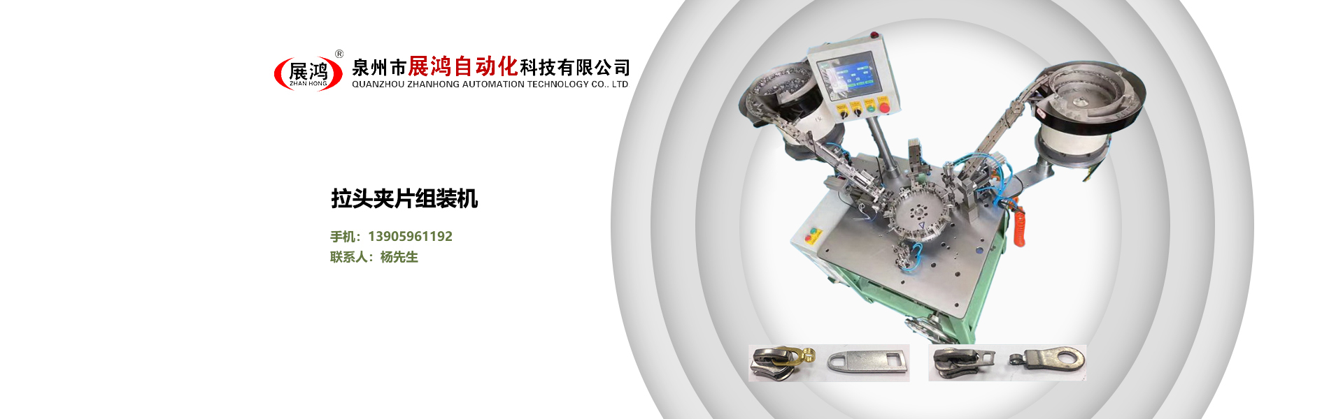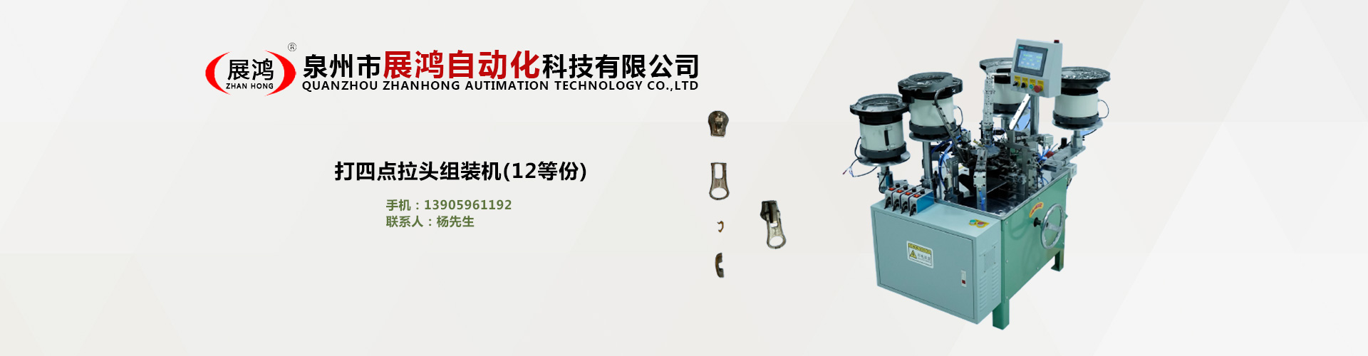 ??泉州市展鴻自動化科技有限公司始創(chuàng)于2003年,是一個集研發(fā)、制造、銷售為一體的現(xiàn)代化公司,專業(yè)從事研發(fā)、生產(chǎn)各類型號的全自動拉鏈頭裝配機。泉州市展鴻自動化科技有限公司始創(chuàng)于2003年,是一家集研發(fā)、生產(chǎn)、銷售、服務于一體的現(xiàn)代化拉鏈頭設備智能制造生產(chǎn)企業(yè):專業(yè)從事研發(fā)、生產(chǎn)各類型號的全自動拉鏈頭智能裝配機。亦可根據(jù)不同客戶的需求,提供適合客戶自身需要的“私人定制”式專用拉鏈頭設備及自動檢測拉頭品質一體機。泉州市展鴻自動化科技有限公司始創(chuàng)于2003年,是一家集研發(fā)、生產(chǎn)、銷售、服務于一體的現(xiàn)代化拉鏈頭設備智能制造生產(chǎn)企業(yè):專業(yè)從事研發(fā)、生產(chǎn)各類型號的全自動拉鏈頭智能裝配機。亦可根據(jù)不同客戶的需求,提供適合客戶自身需要的“私人定制”式專用拉鏈頭設備及自動檢測拉頭品質一體機。